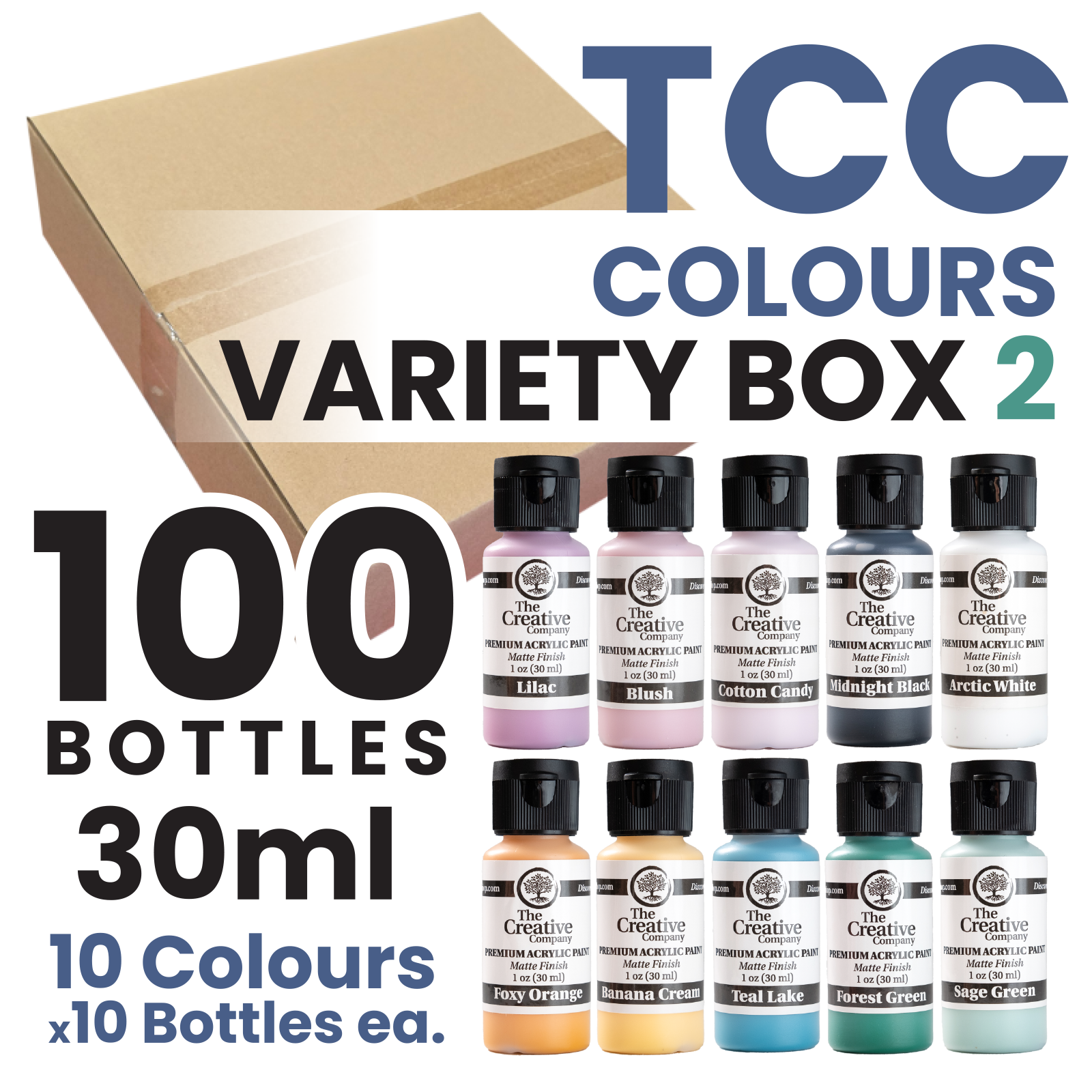 CLEARANCE - TCC COLOURS VARIETY BOX 2 - ACRYLIC PAINTS - 30ml - CASE of 100